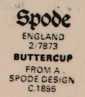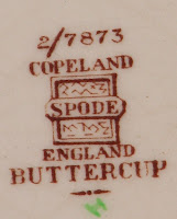 In the Spode archive there is a record of a buttercup pattern which is a hand painted design recorded with pattern number 1/4265. This was produced on bone china in about 1885. It is thought to have been designed by Felix Xavier Abraham*, a fine artist, who worked