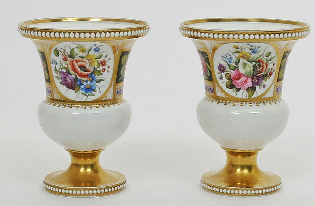 The floral group on the front panel of the vase was slightly different on every vase in a set or