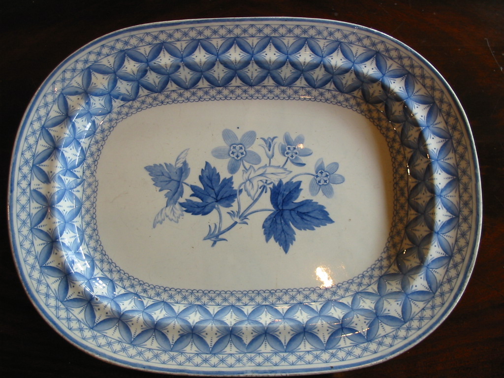 | Dish, earthenware, Geranium pattern, transfer printed c1818 |